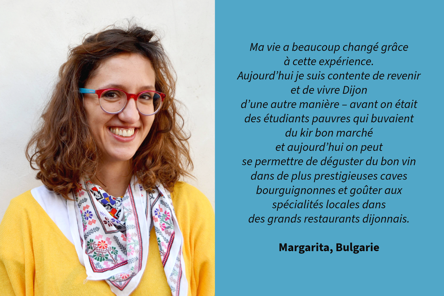 J’ai été très contente ici à Dijon. C’est une ville idéale en termes de grandeur, de coût de vie et il y a beaucoup de choses à faire. J’ai profité des réductions culturelles et j’ai aussi fait plein d’excursions et de randonnées. J’ai habité dans une des résidences Mansart où on était toujours ensemble entre étudiants Erasmus – on déjeunait ensemble, on dînait ensemble, on trainait ensemble dans les chambres en ne faisant rien, en papotant…. Aujourd’hui, 10 ans après, je suis très nostalgique. J’ai eu beaucoup de chance d’avoir effectué cet échange, j’ai rencontré beaucoup de gens que j’apprécie énormément.