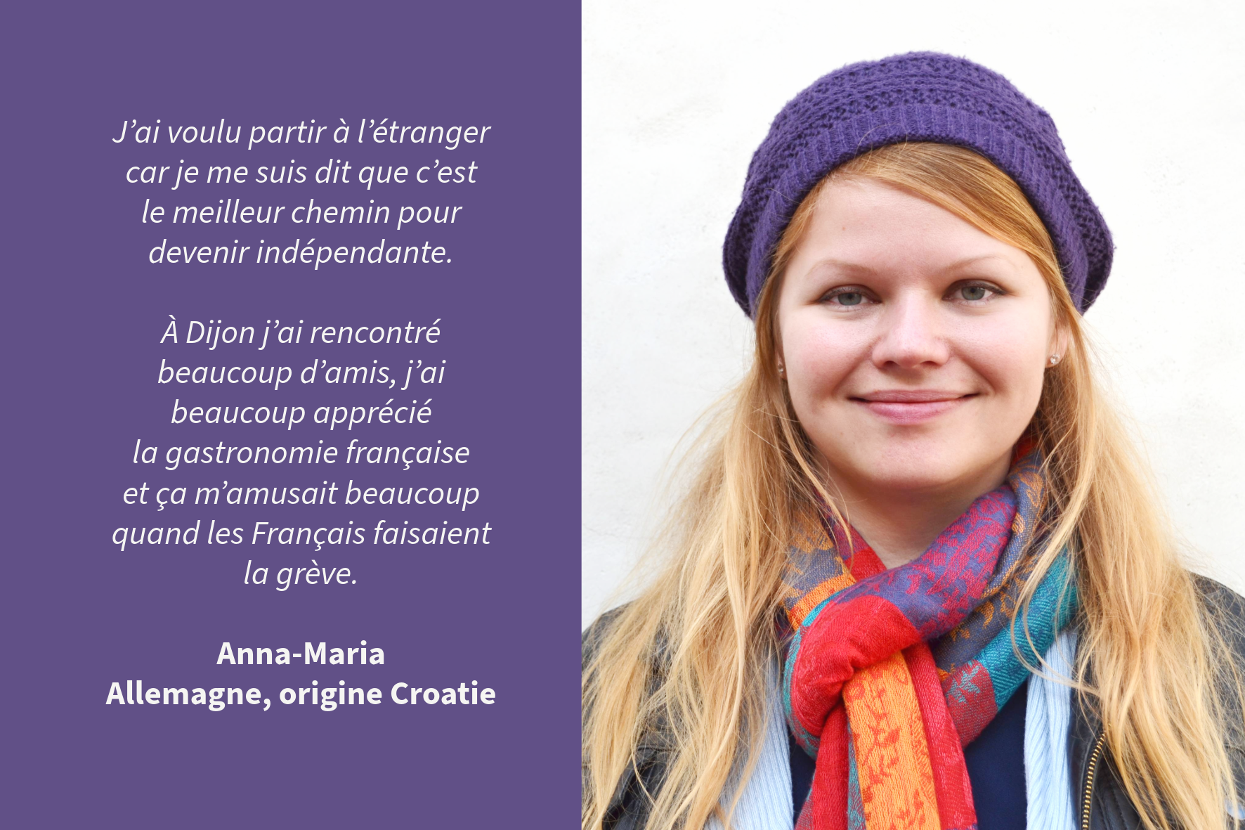 Margarita, Martin, Anna, Elisa, Luitpold, Anna-Maria, Friederike et Aurélien partagent avec vous leurs souvenirs et leurs parcours. Linda, bébé Erasmus, a beaucoup bavé mais a tout de même bien profité de son premier séjour à Dijon où ses parents ont fait leur connaissance tout juste il y a 10 ans.