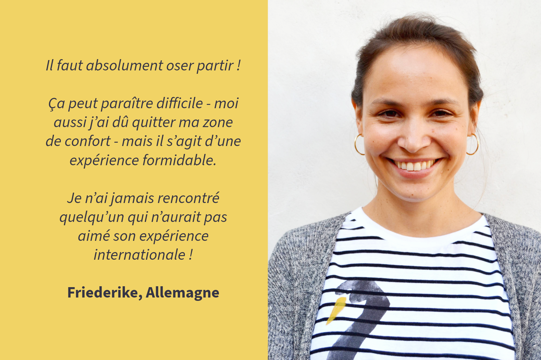 Il faut absolument oser partir ! Ça peut paraitre difficile – moi aussi j’ai dû quitter ma zone de confort – mais il s’agit d’une expérience formidable et je n’ai jamais rencontré quelqu’un qui n’aurait pas aimé son expérience internationale !