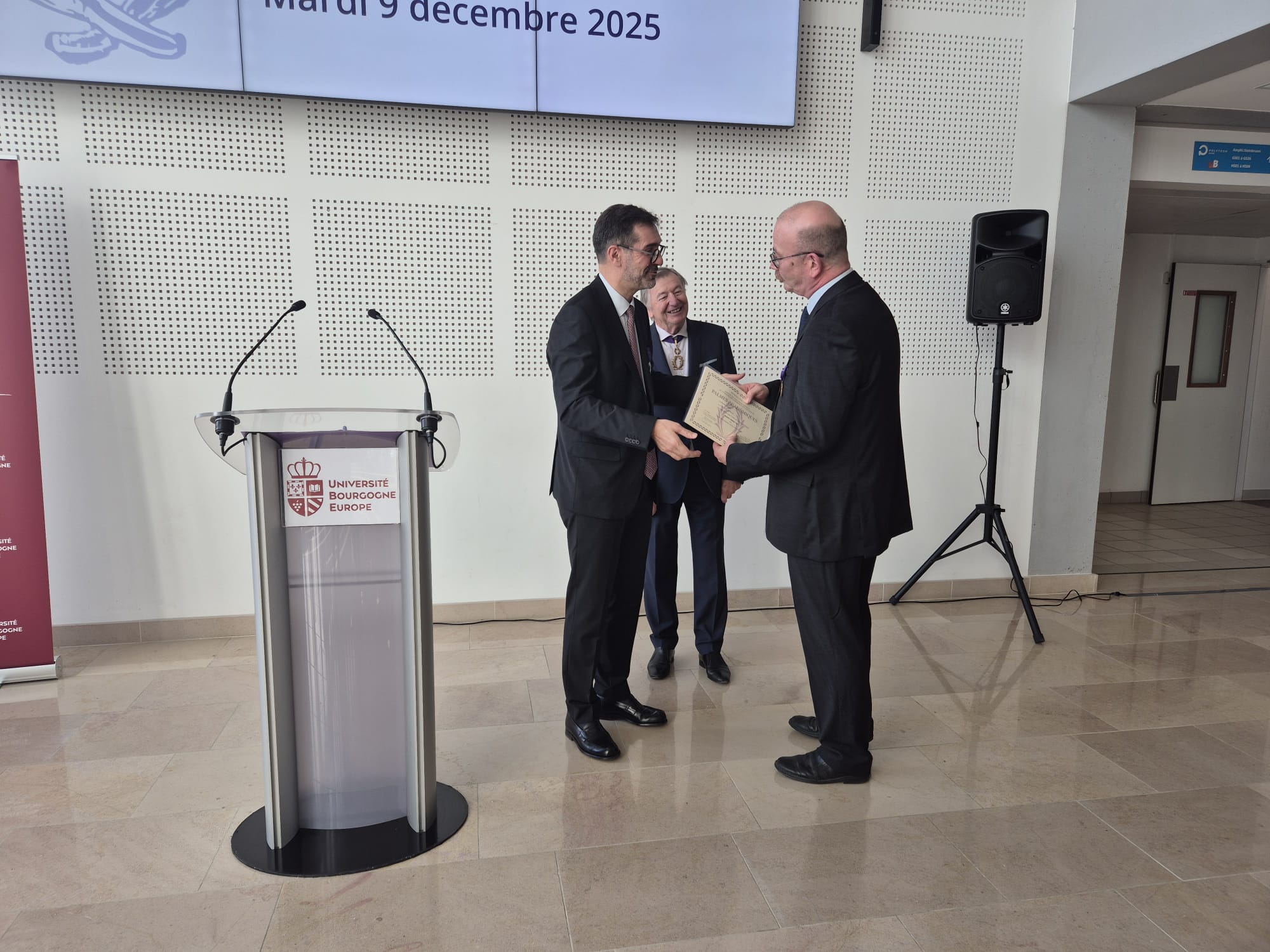 Le 9 décembre 2025, le président Vincent Thomas a remis les Palmes Académiques à huit personnels de l’Université Bourgogne Europe.